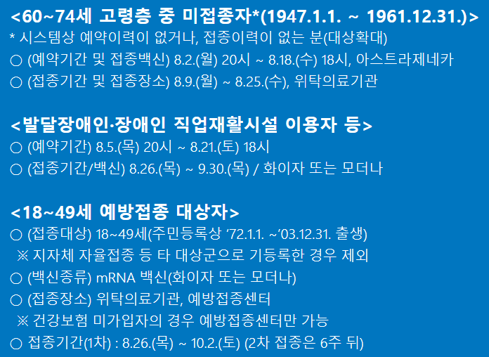 사전 예약 기간 : 8월2일 ~ 8월 31일까지 코로나 백신 접종 사전 예약
