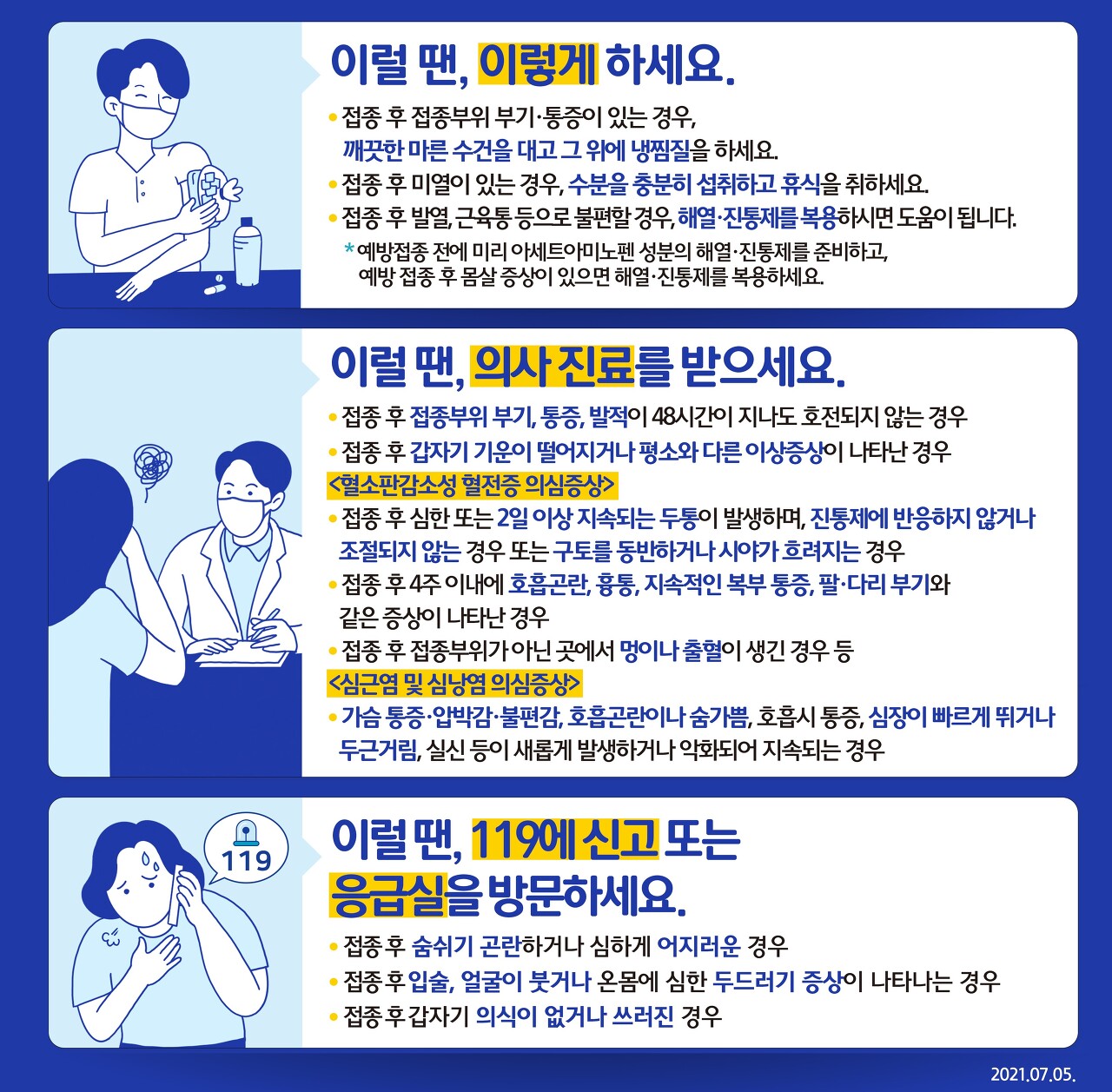 코로나 백신 예방접종 후 아래와 같은 이상증세가 발생하면 이렇게 하세요.