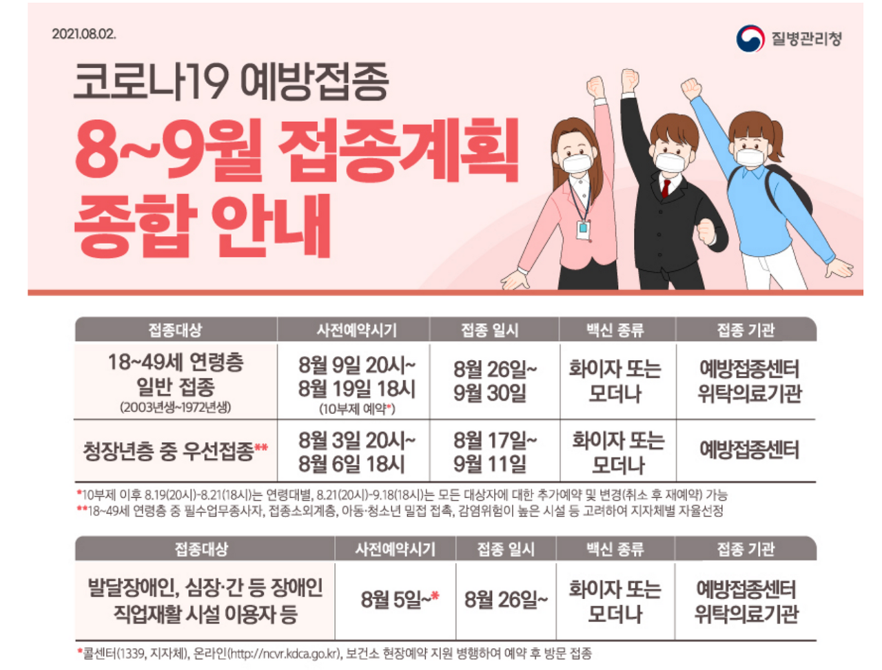 예약 기간 : 8월 5일부터 백신 접종 사전 예약 실시