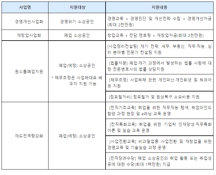 2. 소상공인 폐업지원금 종류