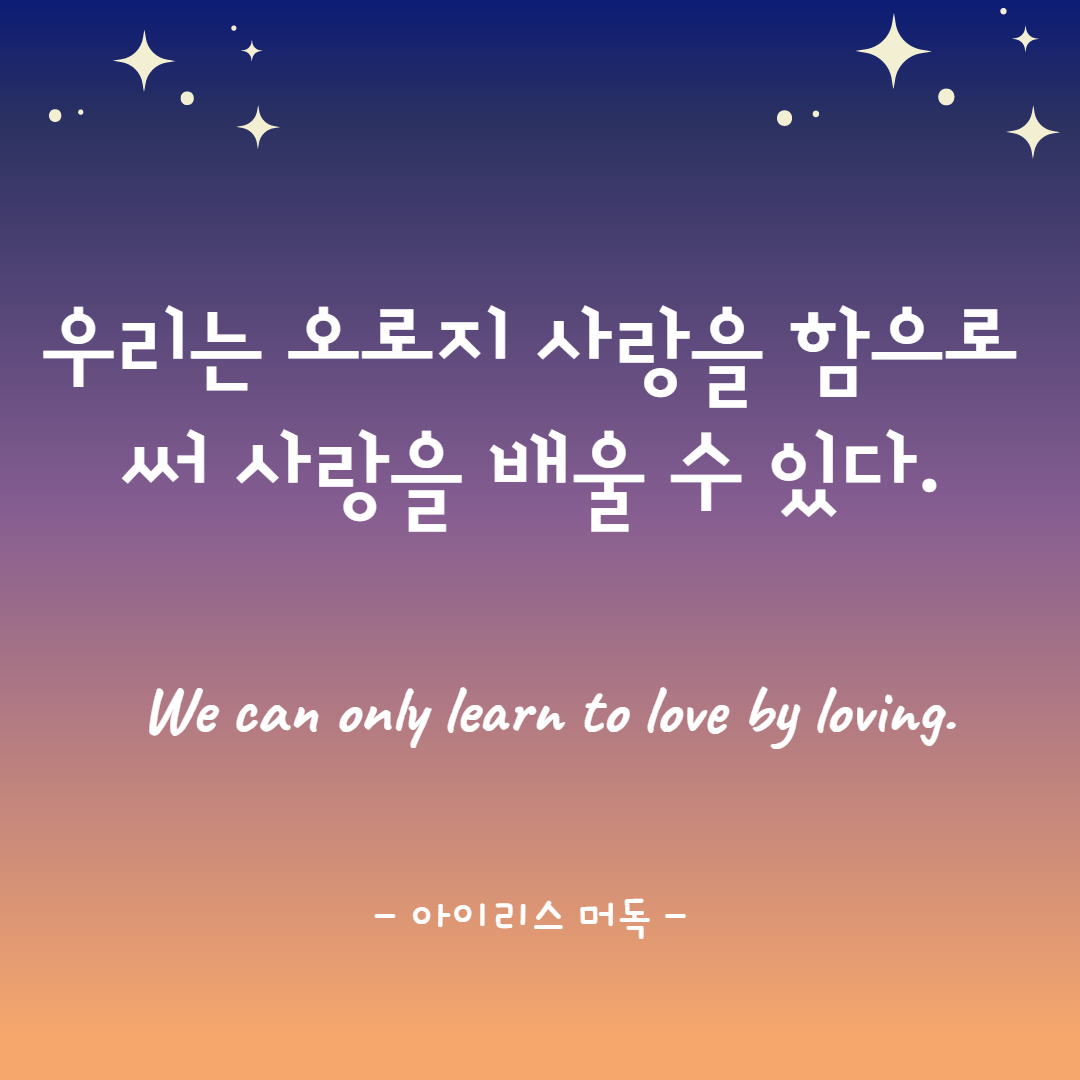 우리는 오로지 사랑을 함으로써 사랑을 배울 수 있다.