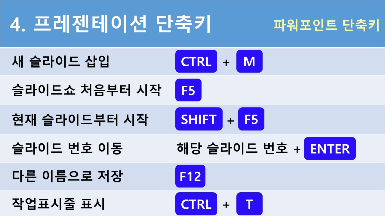 4. 파워포인트 단축키 - 프레젠테이션 단축키
