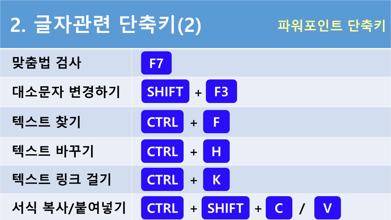 2. 파워포인트 단축키 - 글자 관련 단축키(2)