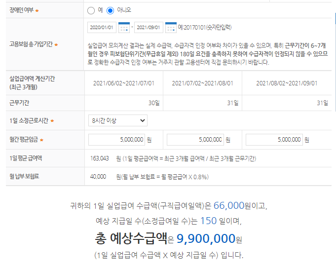 저는 총 9,900,000 원이 실업급여 수급액으로 나옵니다.