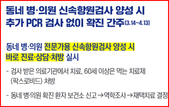 60대 이상 고위험군은 해당 검사를 진행한 병원에서 바로 처방이 가능하지만, 나머지는 다시 PCR검사를 받아야 치료제를 처방받을 수 있습니다.