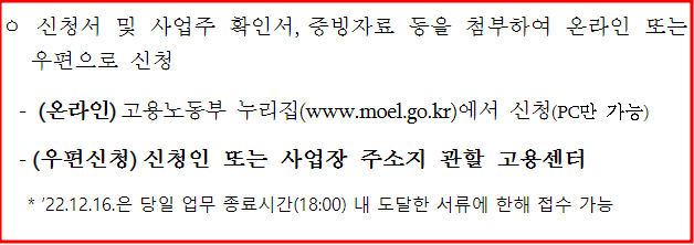 - 오프라인 신청 : 관할 고용센터 방문 또는 우편으로 신청