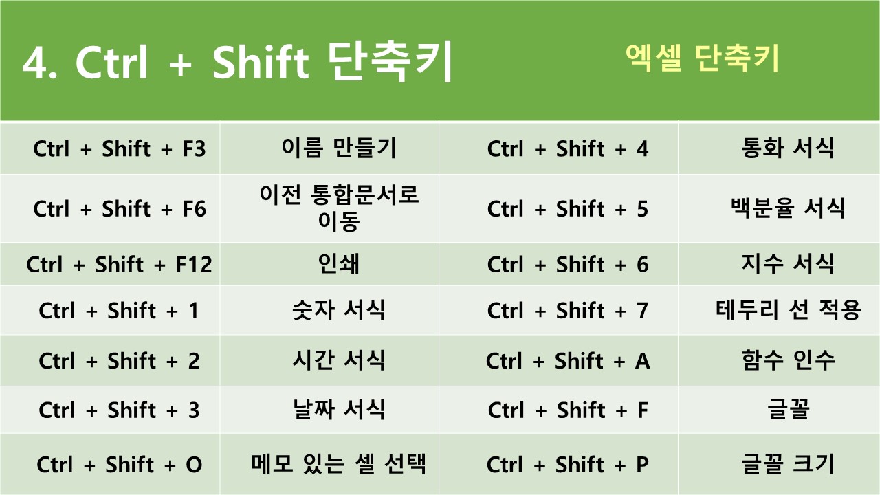 엑셀 단축키 모음4 - Ctrl + Shift 단축키