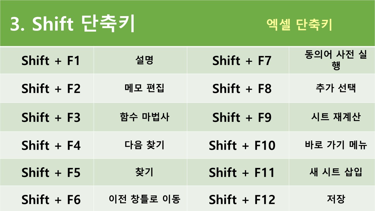 엑셀 단축키 모음5 - Shift, Alt, Ctrl 단축키
