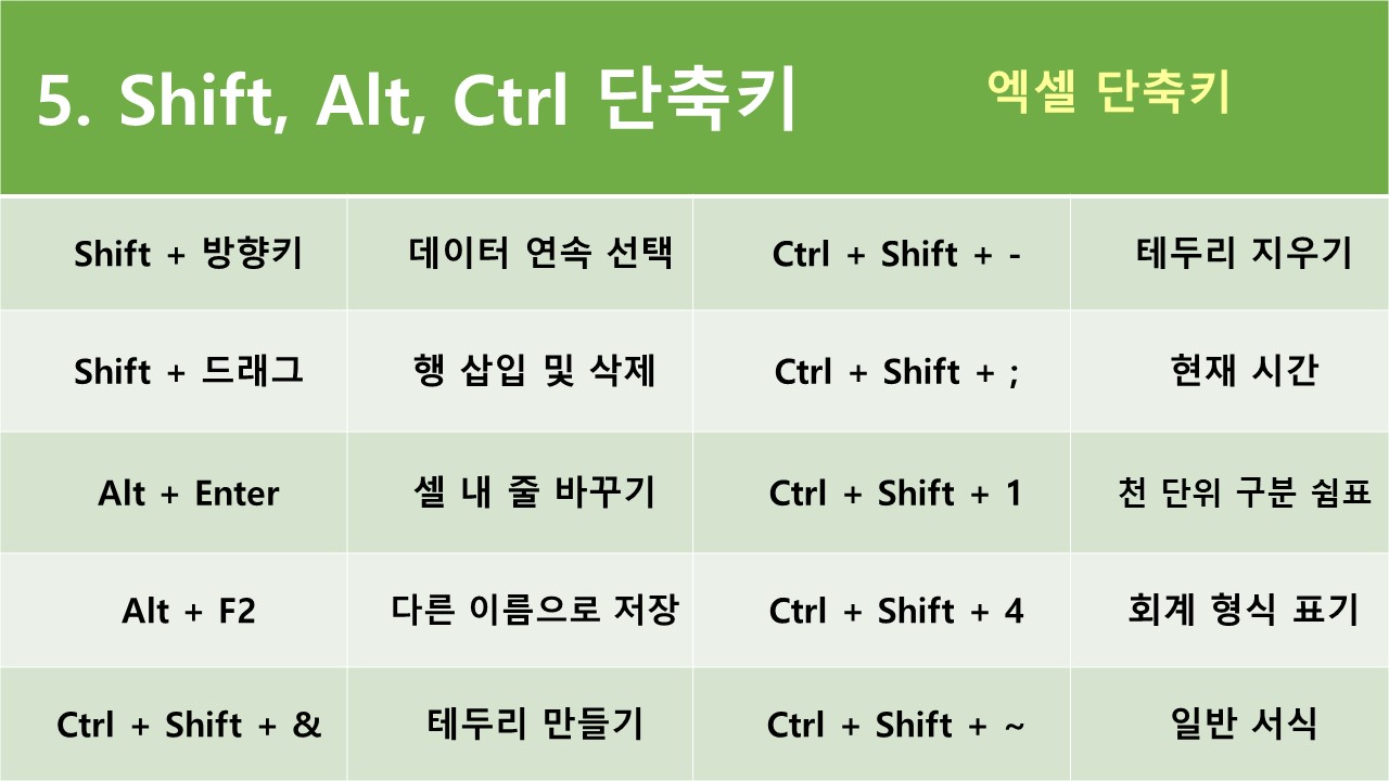 5. 엑셀 Shift, Alt, Ctrl 단축키